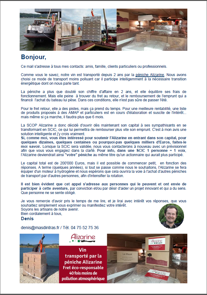 Appel a soutenir la péniche Alizarine